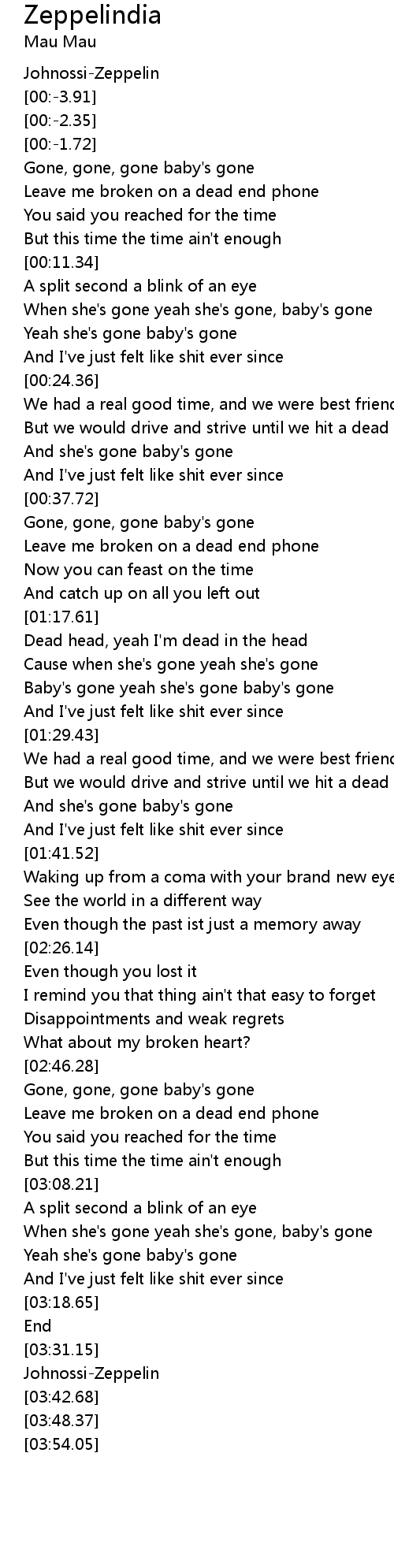 [01:25.14] Baby's gone yeah she's gone baby's gone