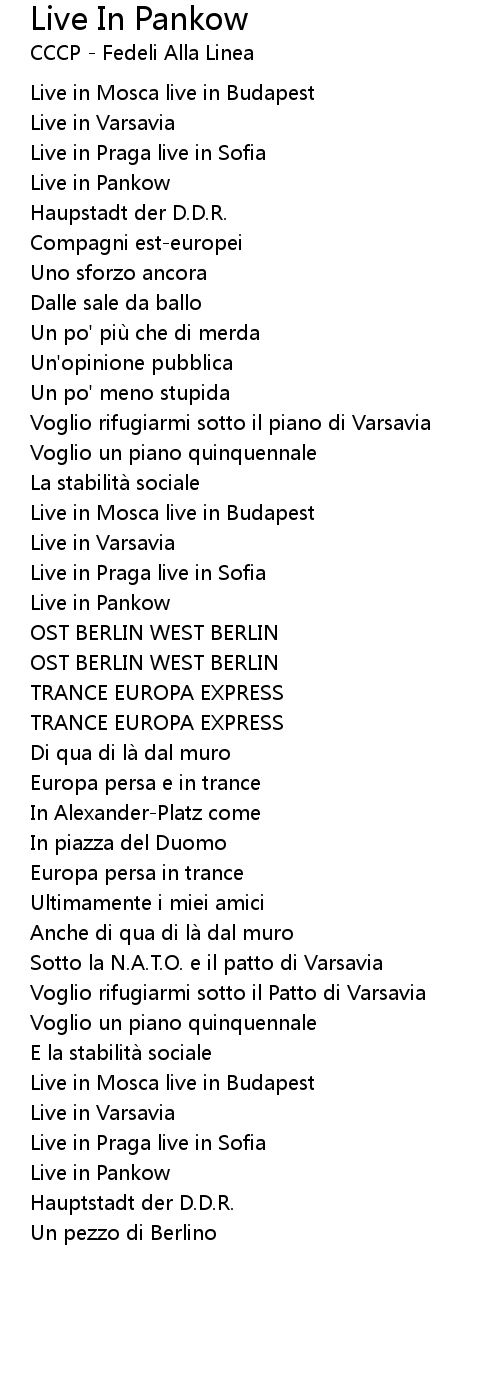 | Artist | CCCP - Fedeli Alla Linea |