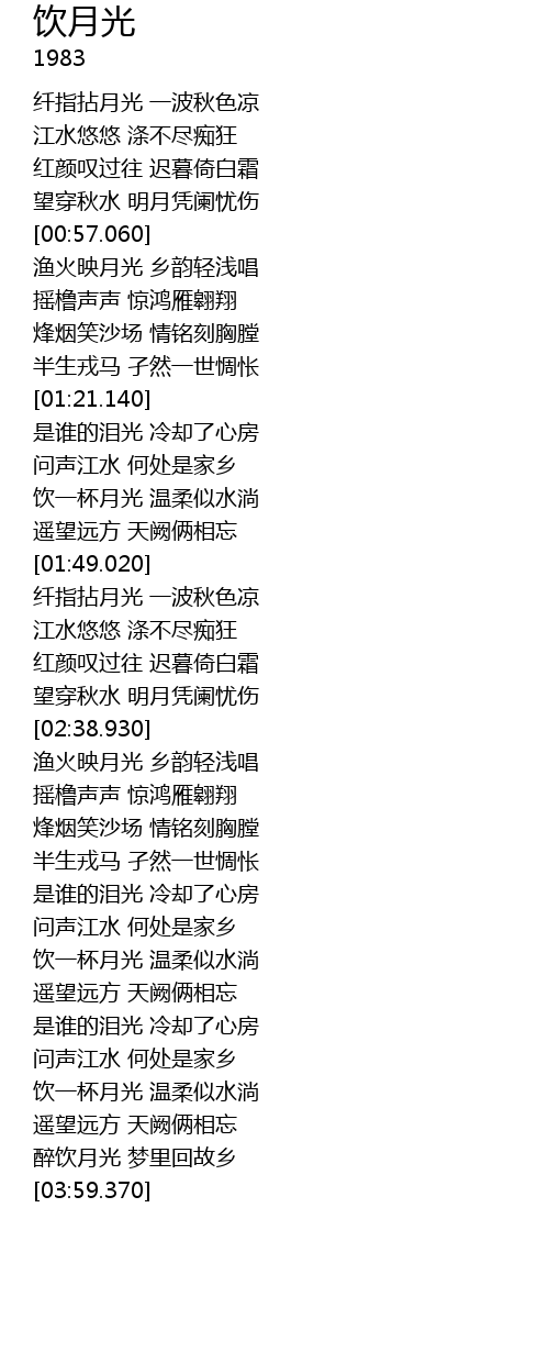 | [03:52.230] | 醉饮月光 梦里回故乡 |