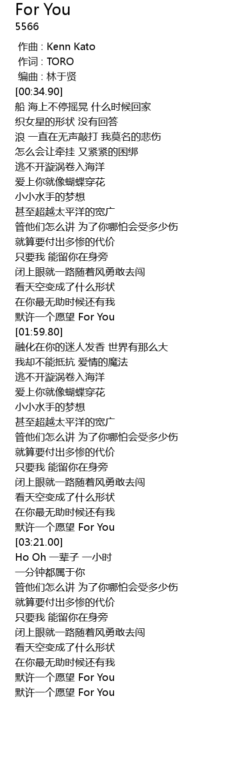 | [01:51.16] | mò xǔ yí gè yuàn wàng For You |