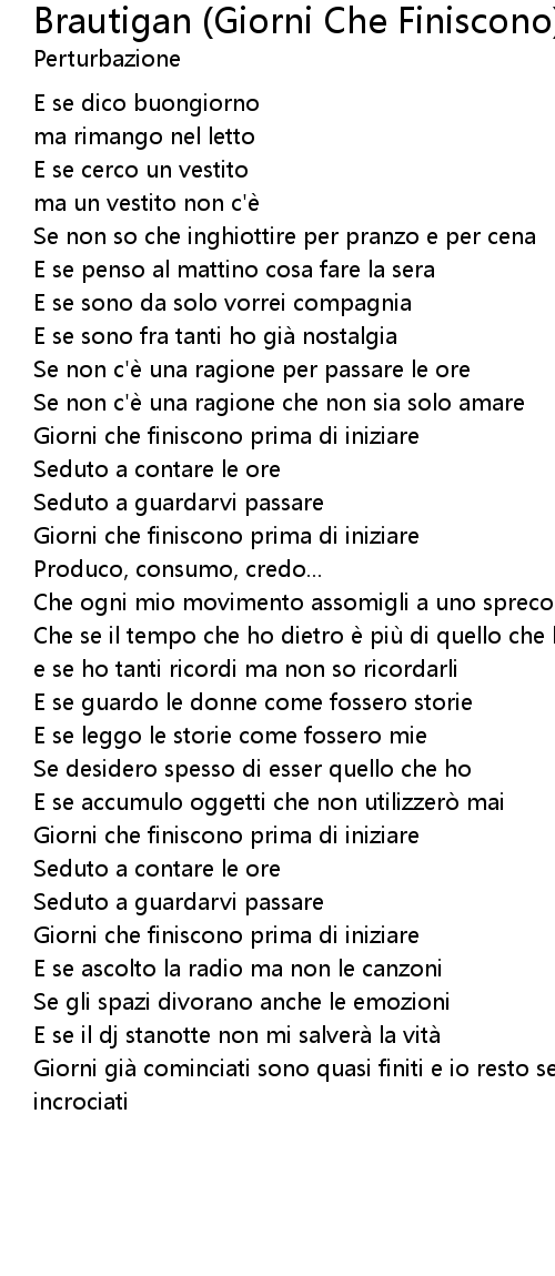 | Song | Brautigan (Giorni Che Finiscono) |