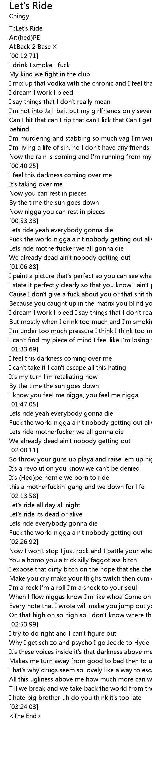| [00:59.98] | Lets ride motherfucker we all gonna die |