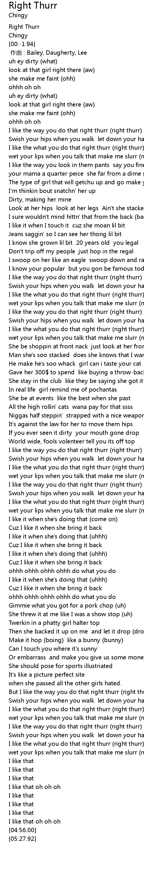 | [00:33.70] | I like the what you do that right thurr (right thurr) |