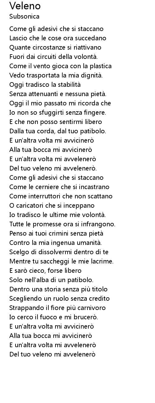 | Del tuo veleno mi avvelenerò. | |