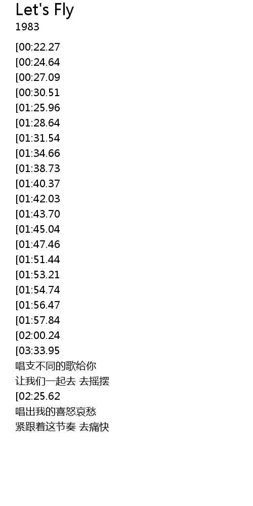 | [02:12.58][02:25.62] | Let’s Fly Oh.... |