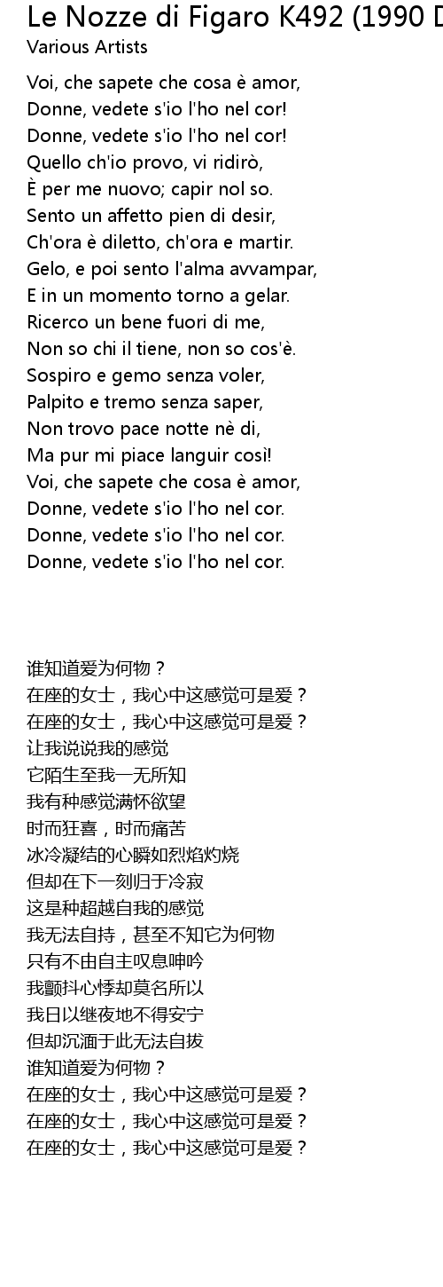| Song | Le Nozze di Figaro K492 (1990 Digital Remaster), ACT 2: Voi che sapete (Cherubino) |