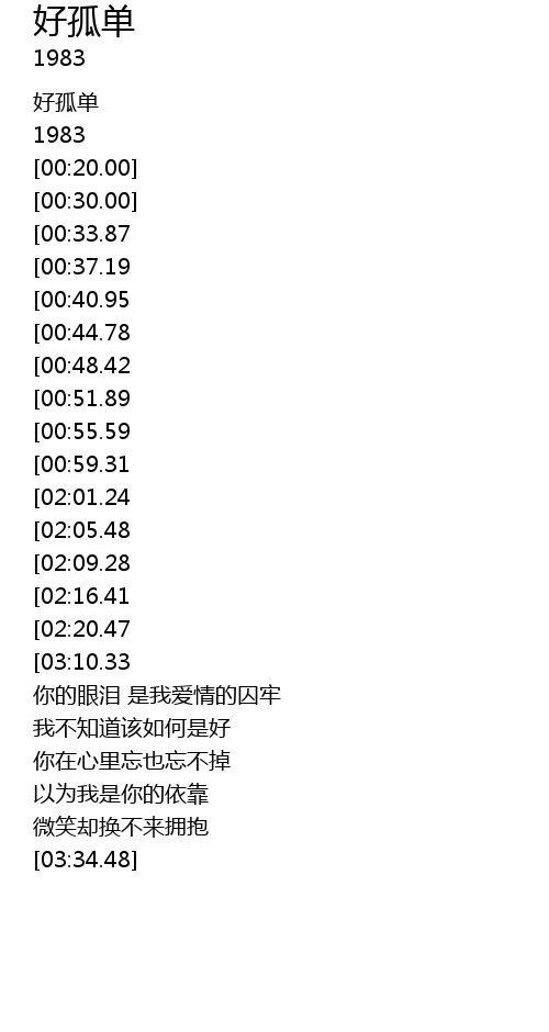 | [02:47.90][02:01.24][01:02.45] | 好孤单 |