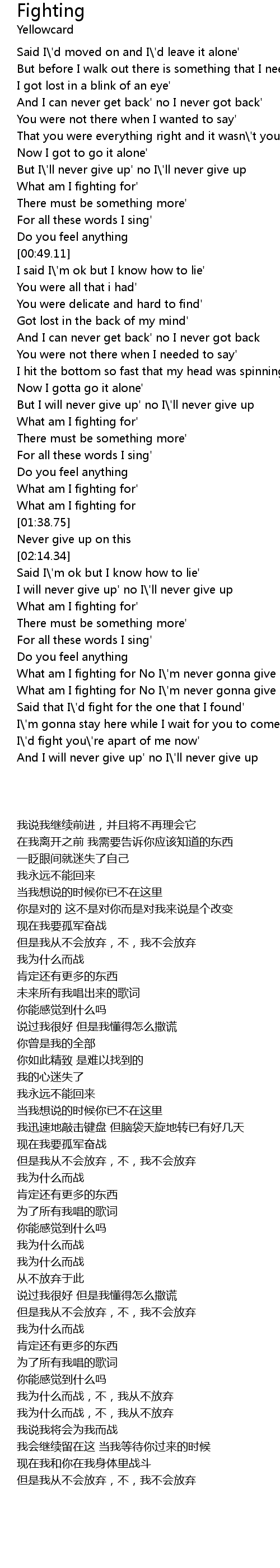 [02:36.40] What am I fighting for No I\'m never gonna give up' give up