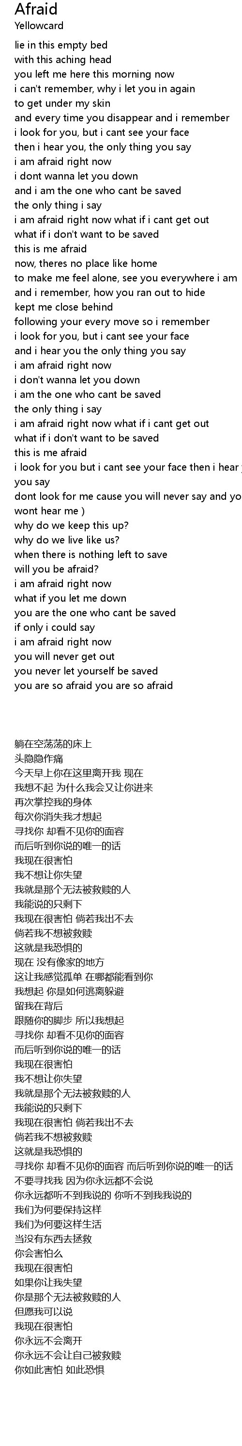 | [00:50.24] | i am afraid right now what if i cant get out |