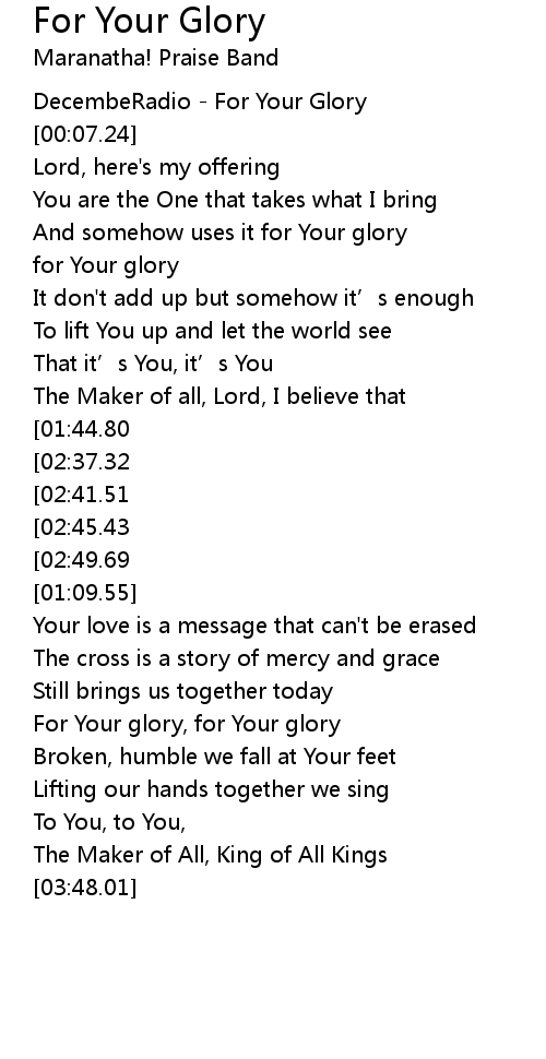 | [00:01.13] | DecembeRadio - For Your Glory |
