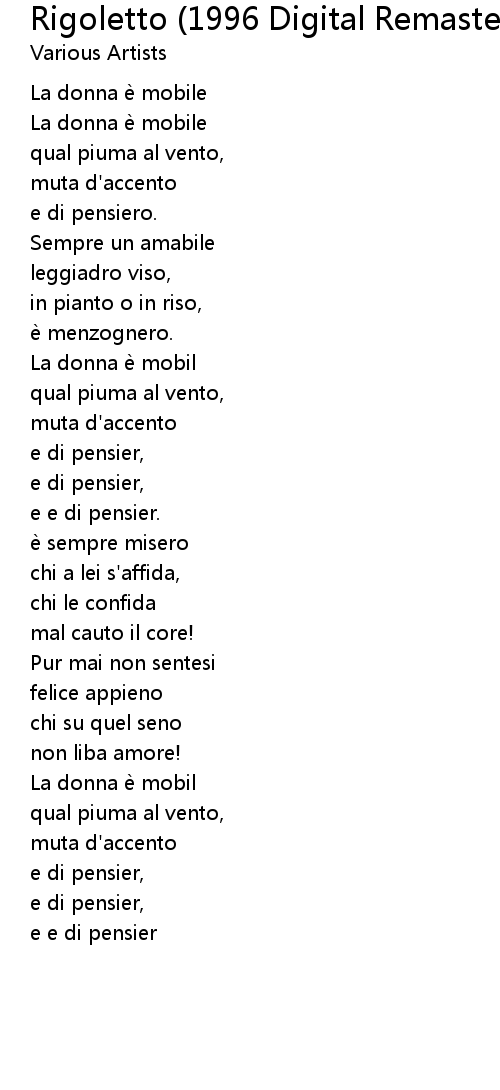 | Song | Rigoletto (1996 Digital Remaster), Act 3: La donna è mobile |