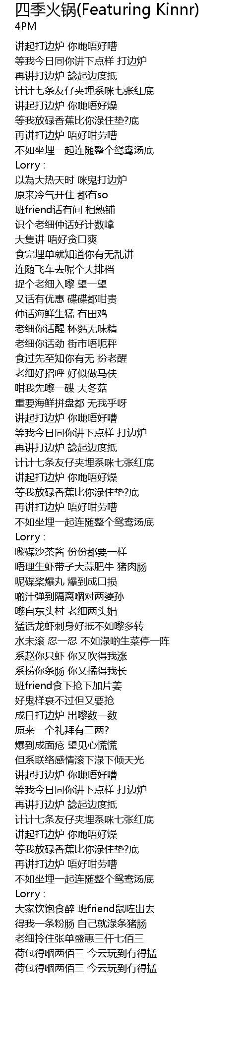 | Song | 四季火锅(Featuring Kinnr) |