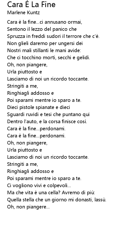 | Song | Cara È La Fine |
