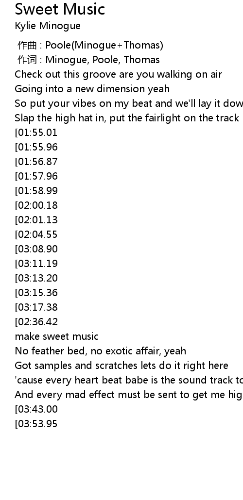 | [00:01.00] | zuò cí : Minogue, Poole, Thomas |