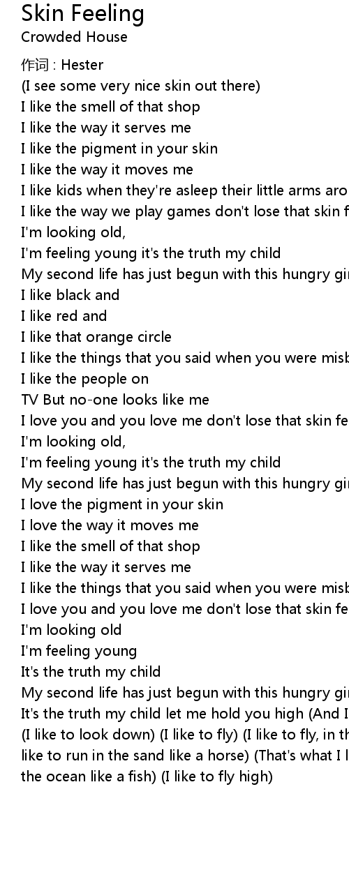 | It's the truth my child let me hold you high (And I like to get up in the sky) (I like to look down) (I like to fly) (I like to fly, in the sky real high) (I like to run in the sand like a horse) (That's what I like) (I like to swim in the ocean like a fish) (I like to fly high) |