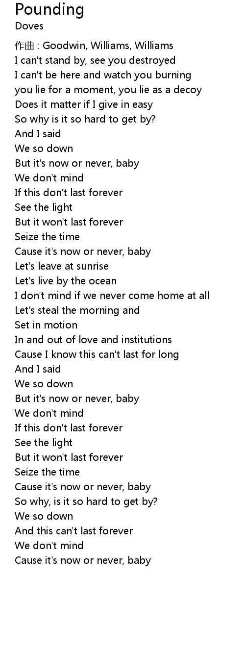 | Cause it's now or never, baby | |