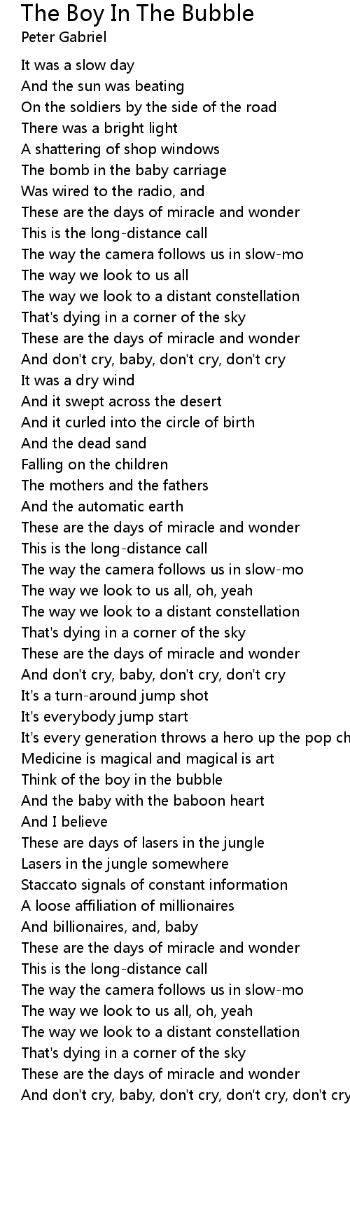 Think of the boy in the bubble |