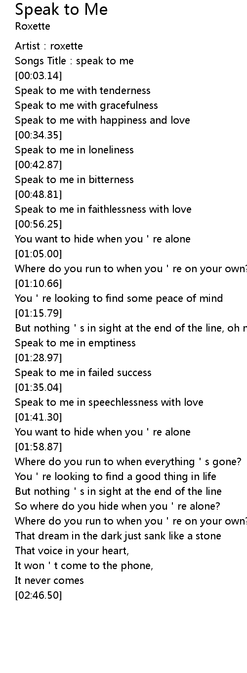 | [02:14.98] | But nothing's in sight at the end of the line |