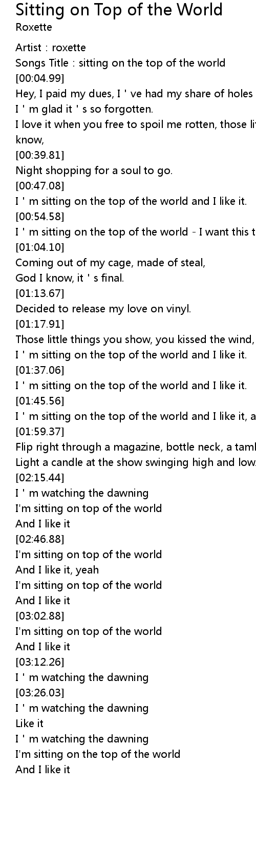 | [00:01.98] | Songs Title:sitting on the top of the world |