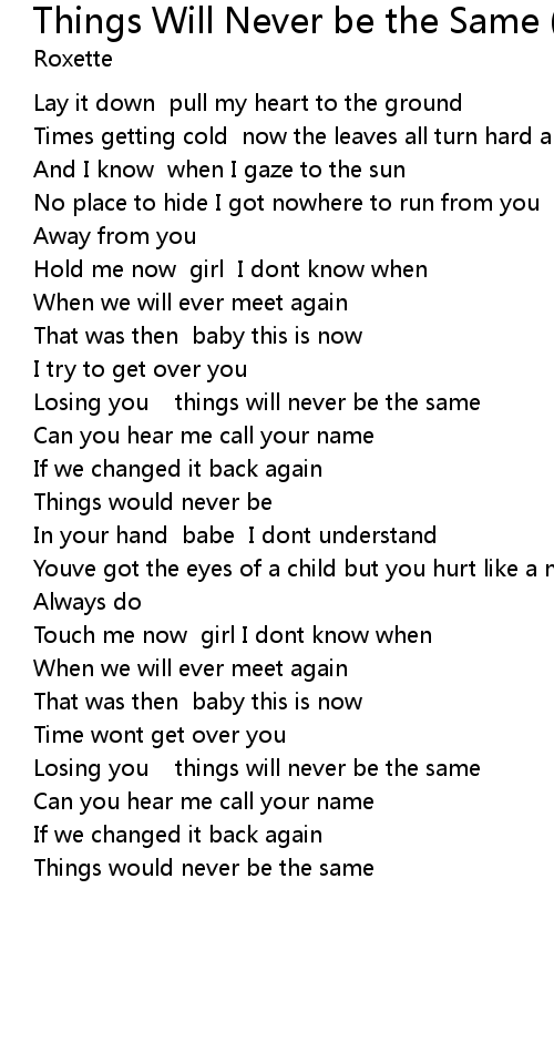 Things Will Never be the Same (Live in S:t Petersburg 2010) Lyrics