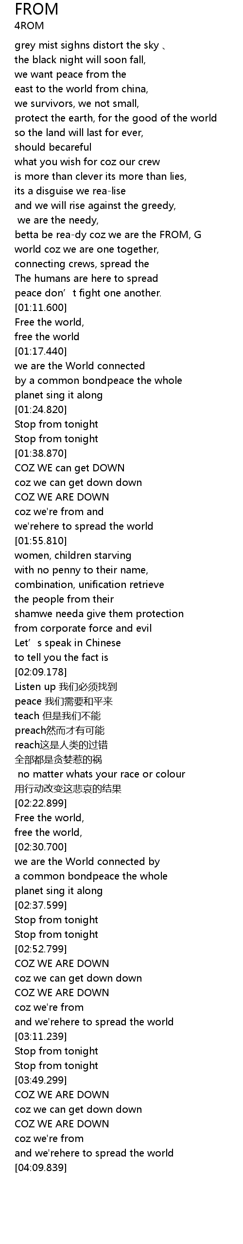 | [04:04.0] | coz we' re from |