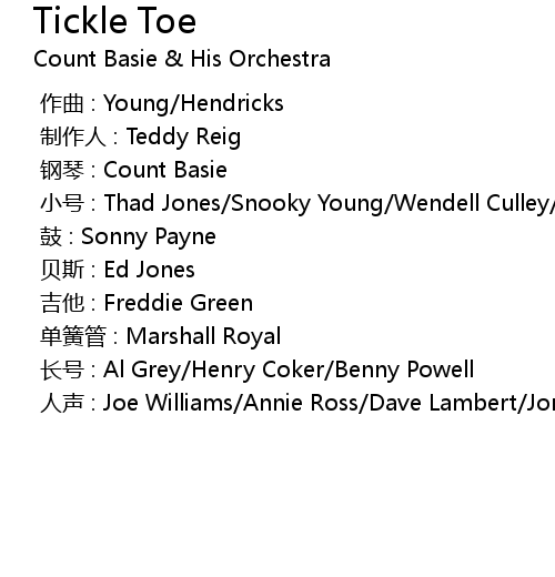 | [00:00.000] | 人声 : Joe Williams/Annie Ross/Dave Lambert/Jon Hendricks |