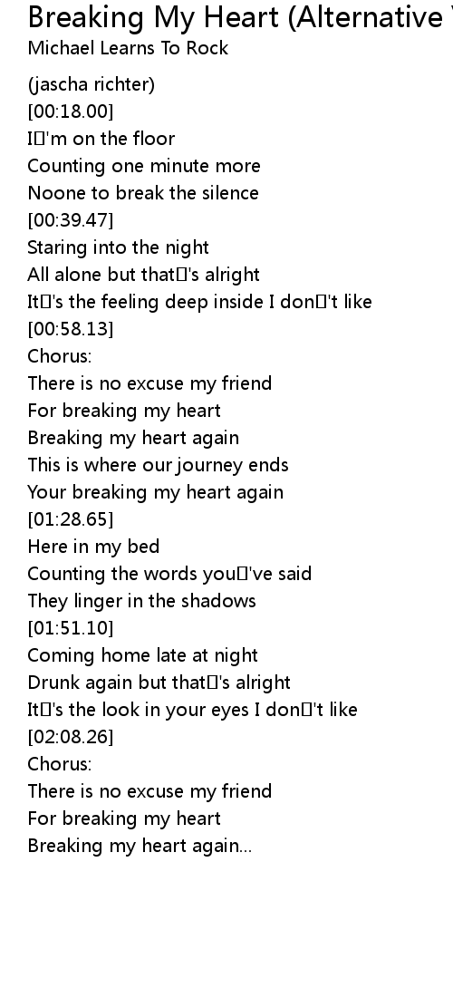 | [02:18.80] | For breaking my heart |