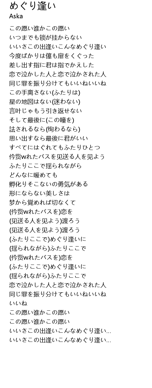 | [04:01.76] | (ふたりここで)めぐり逢いに |