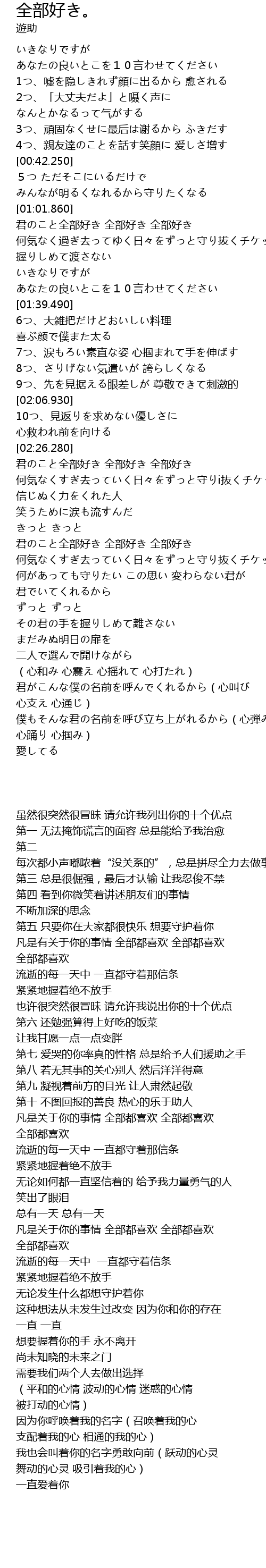 | [02:26.940] | 君のこと全部好き 全部好き 全部好き |