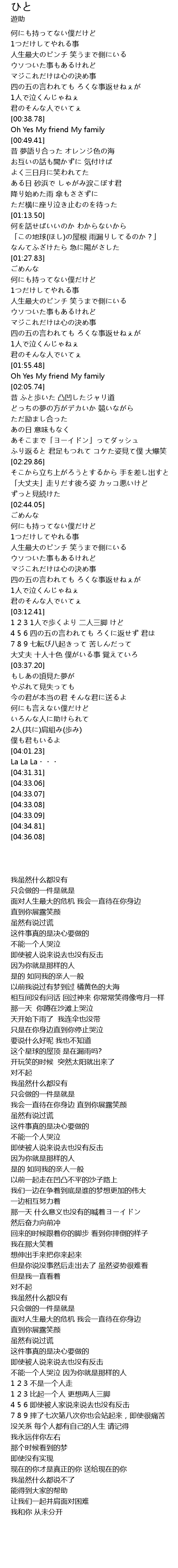 | [02:23.36] | ふり返ると 君足もつれて コケた姿見て僕 大爆笑 |