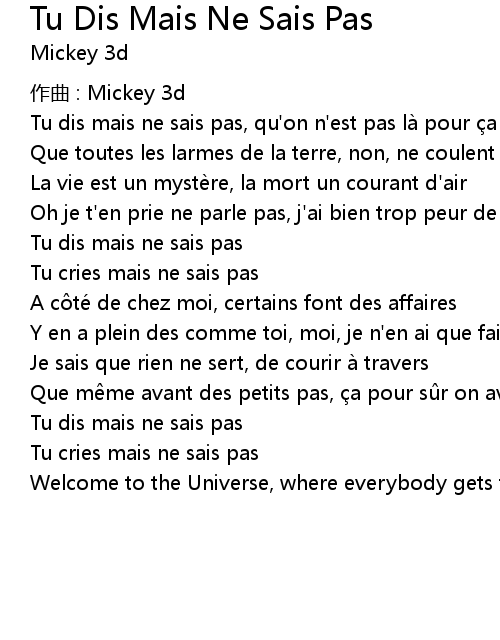 | Tu dis mais ne sais pas, qu' on n' est pas la pour a | |