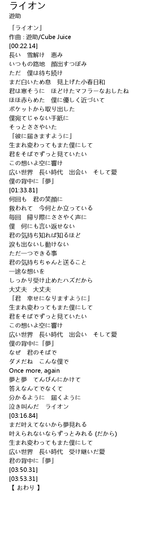 | [00:01.14] | 「ライオン」 |