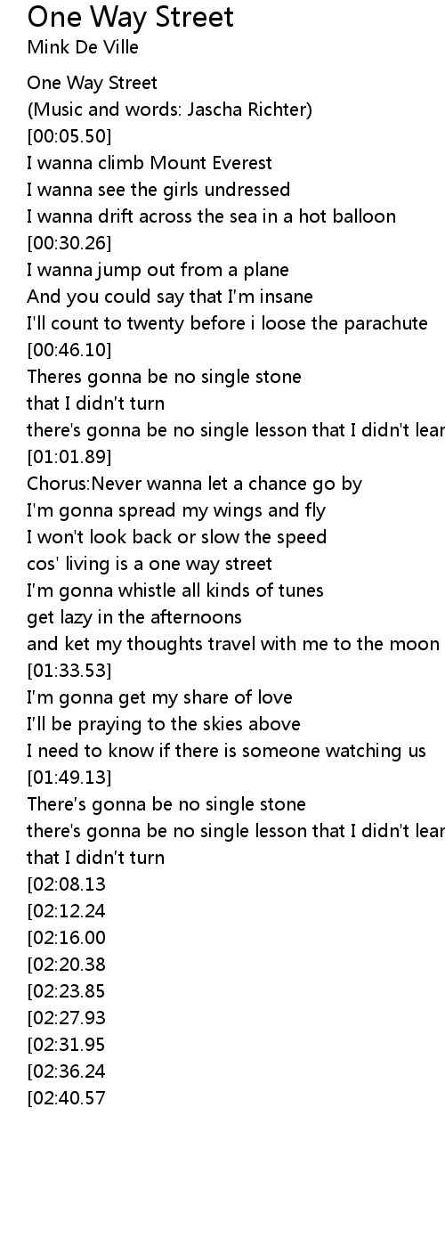 | [03:23.62][02:20.38] | cos' living is a one way street |