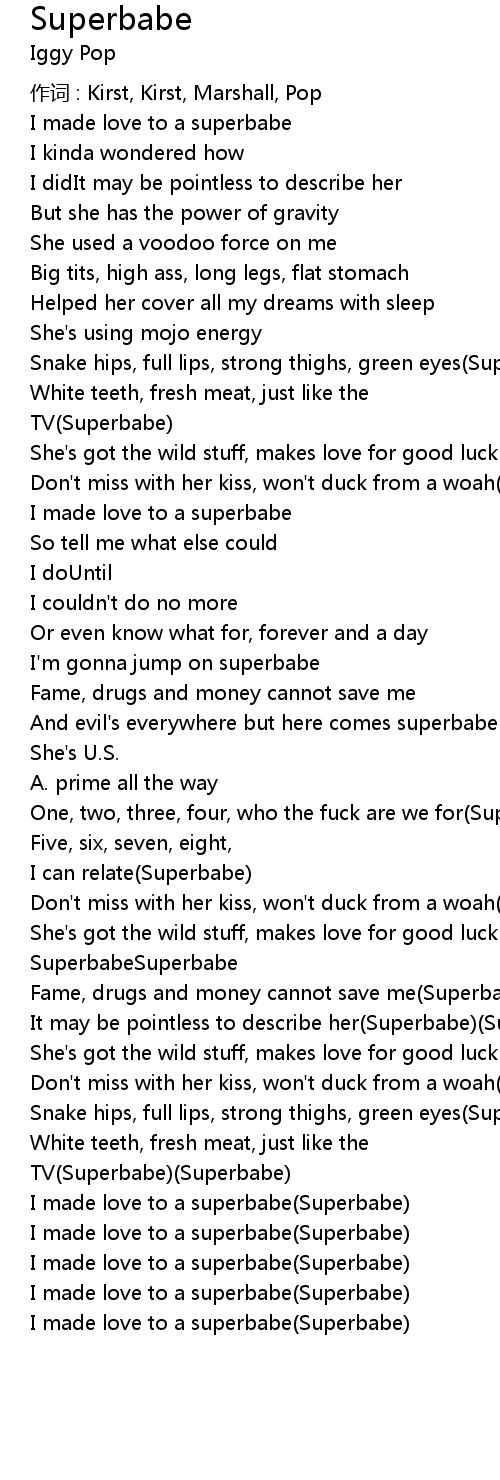 | She's got the wild stuff, makes love for good luck(Superbabe) | |
