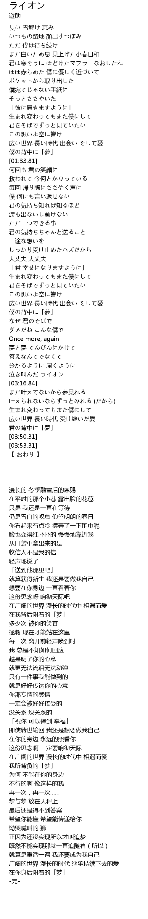 | [03:41.08] | 広い世界 長い時代 受け継いだ愛 |