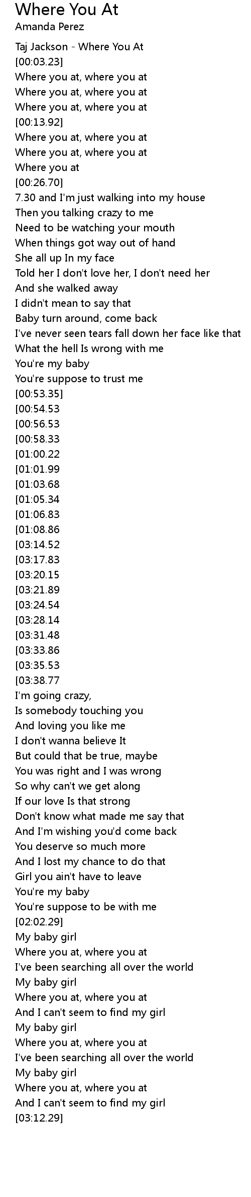 Now I'm wondering where you at |