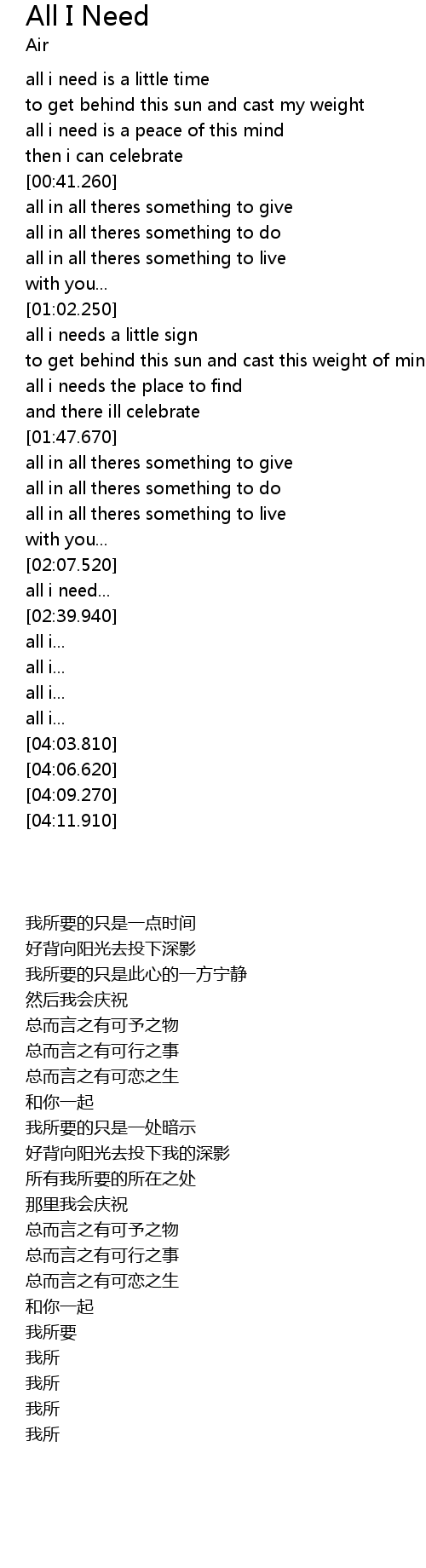 | Song | All I Need |