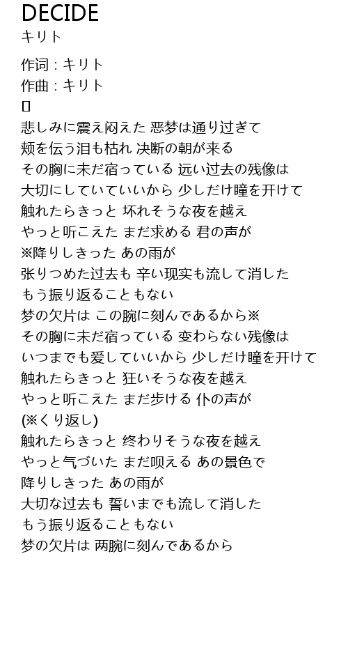 | 作词:キリト | |