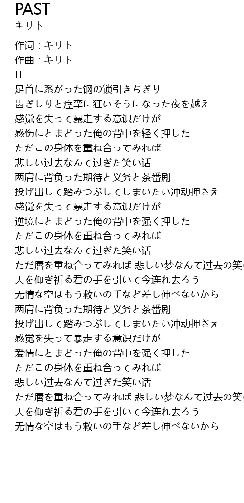 | ただこの身体を重ね合ってみれば 悲しい过去なんて过ぎた笑い话 | |