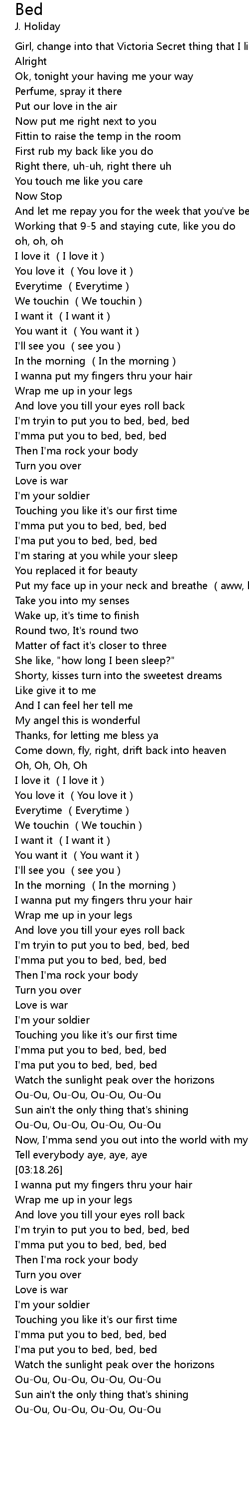 | [03:35.38] | I'm tryin to put you to bed, bed, bed |