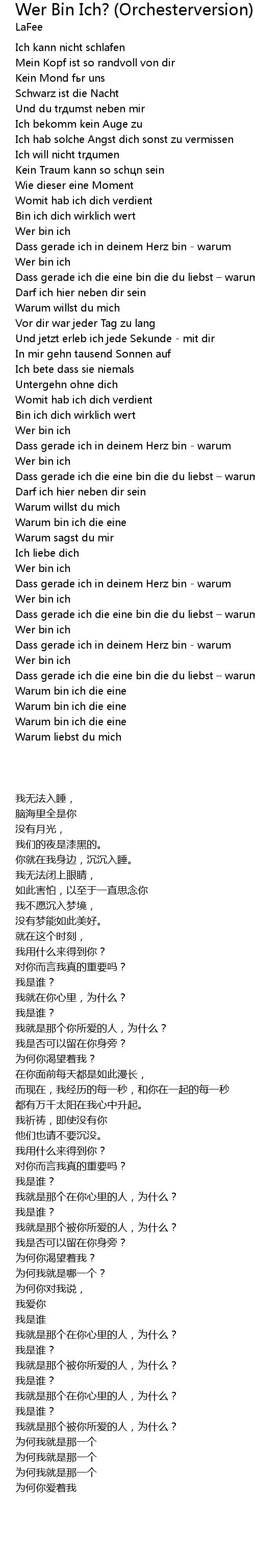 | Song | Wer Bin Ich? (Orchesterversion) |