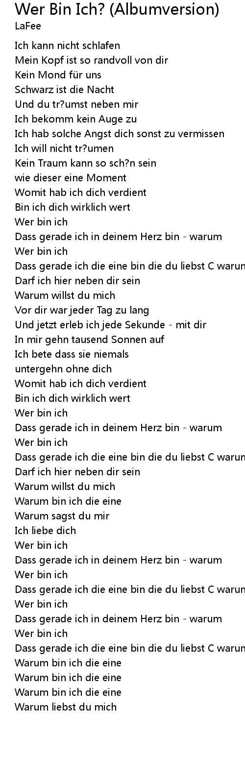 | Dass gerade ich die eine bin die du liebst C warum | |