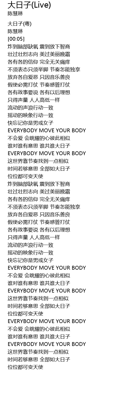 | [00:24] | 不须表态只须举脚 节奏怎能独享 |