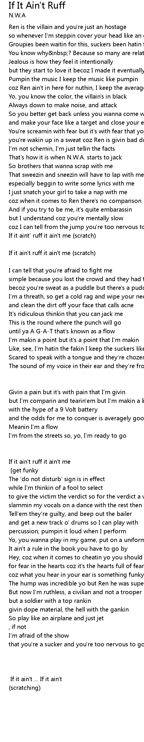 If It Ain't Ruff Lyrics