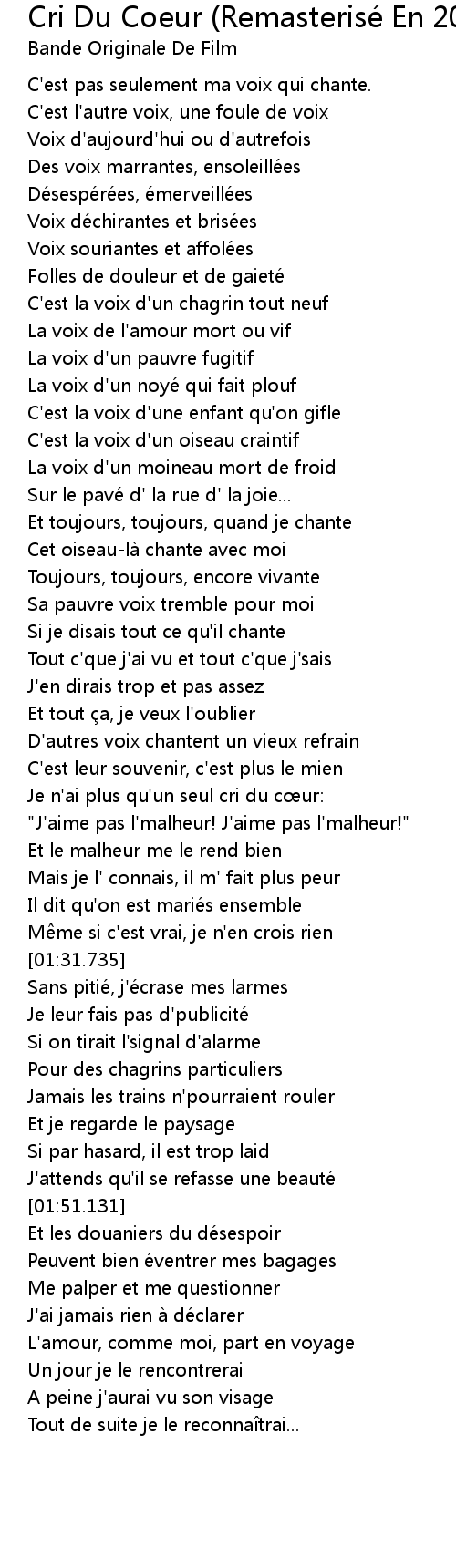 | Song | Cri Du Coeur (Remasterisé En 2007) |