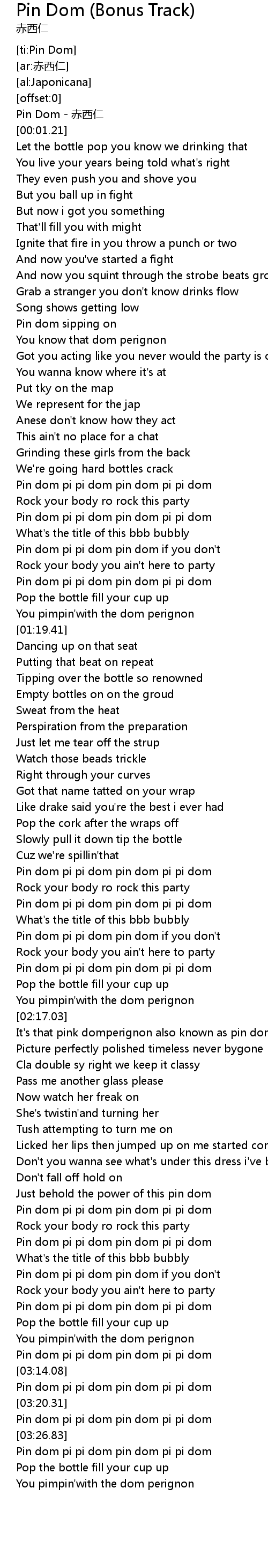 | [03:29.73] | Pin dom pi pi dom pin dom pi pi dom |