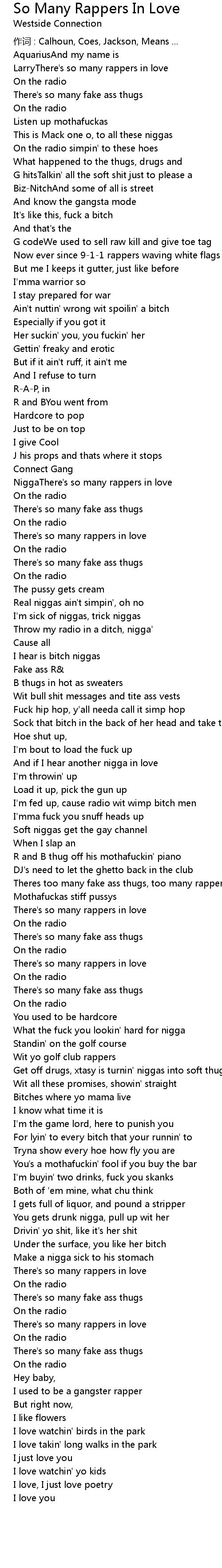 | NiggaThere's so many rappers in love | |