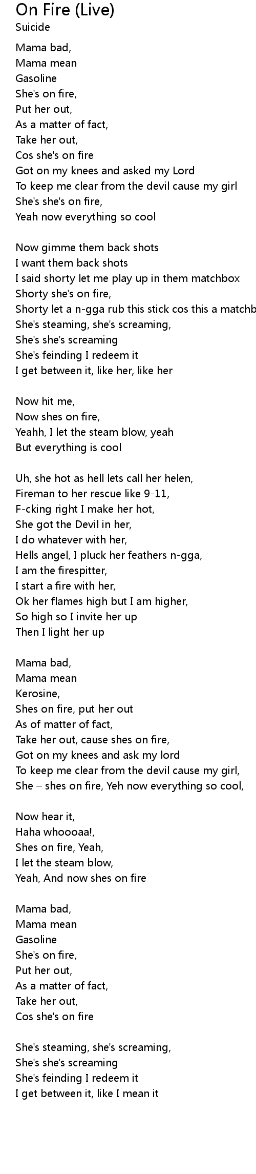 | Cos she's on fire | |