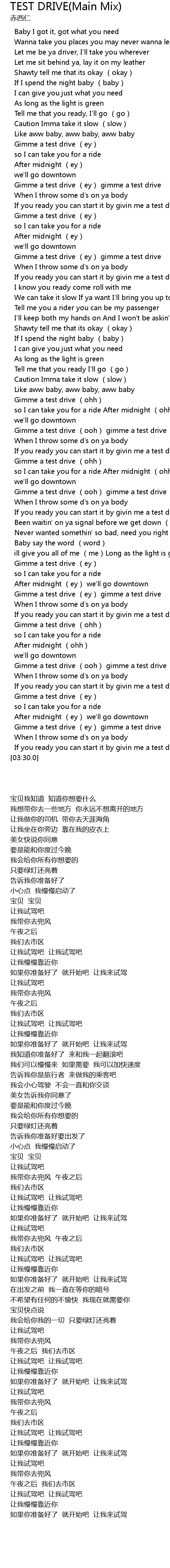 | [03:06.0] | Gimme a test drive ooh gimme a test drive |