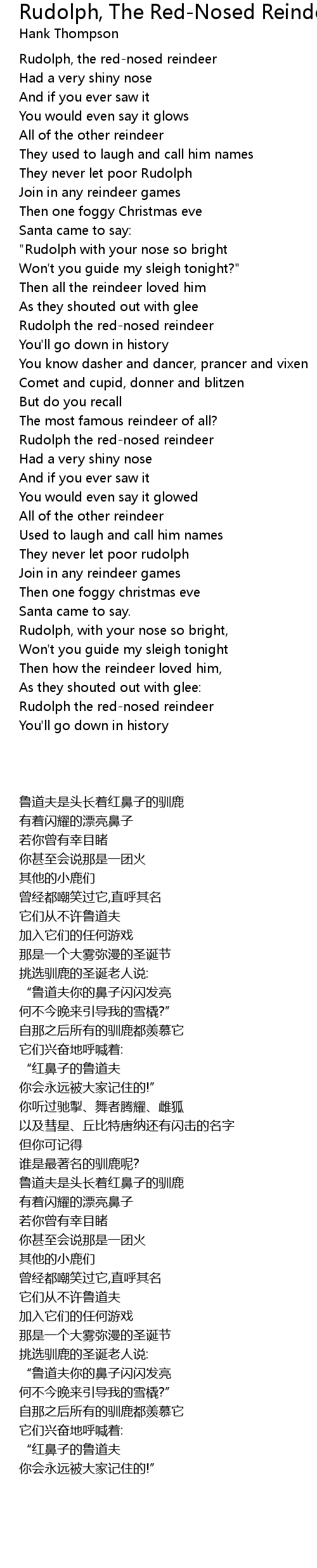 Rudolph, The Red-Nosed Reindeer Lyrics